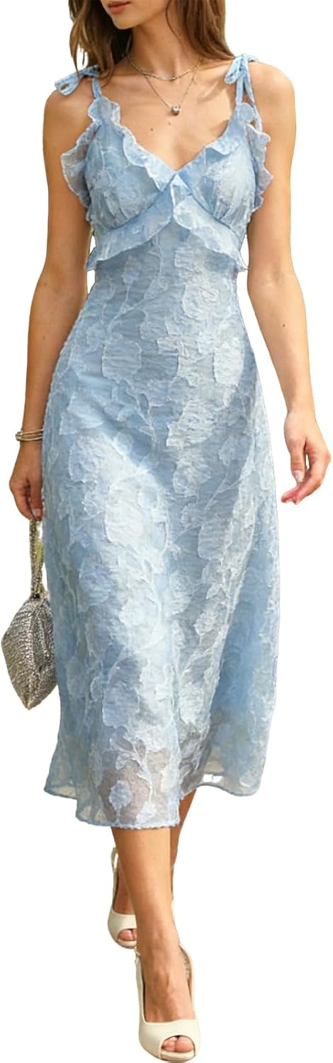 RIHOAS Boho Midi Floral Dress - Elegant Flowy Sundress | Formal-Inspired Outfit for Wedding Guest | Christmas Party Dress