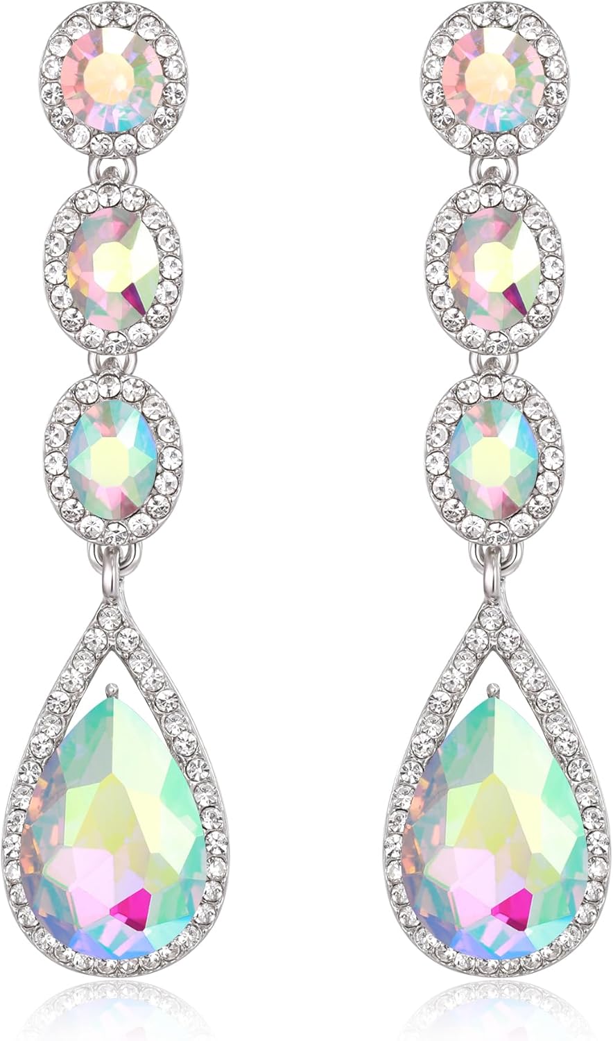 Flyonce Wedding Bridal Rhinestone Crystal Multi Teardrop Pierced Dangle Earrings