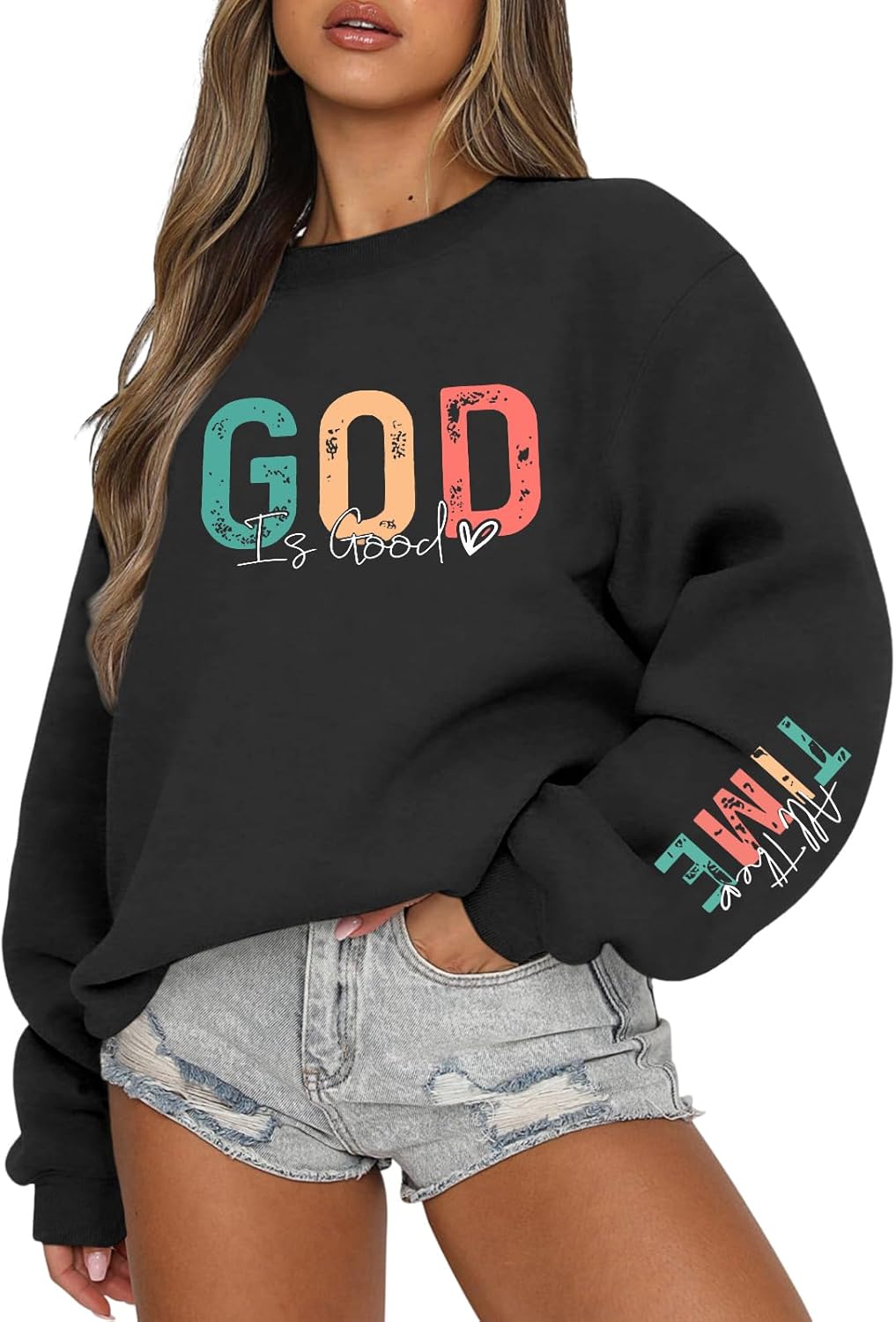 Christian God Is Good Sweatshirt for Women Oversized Religious Jesus Faith Shirts Inspirational Bible Verse Pullover