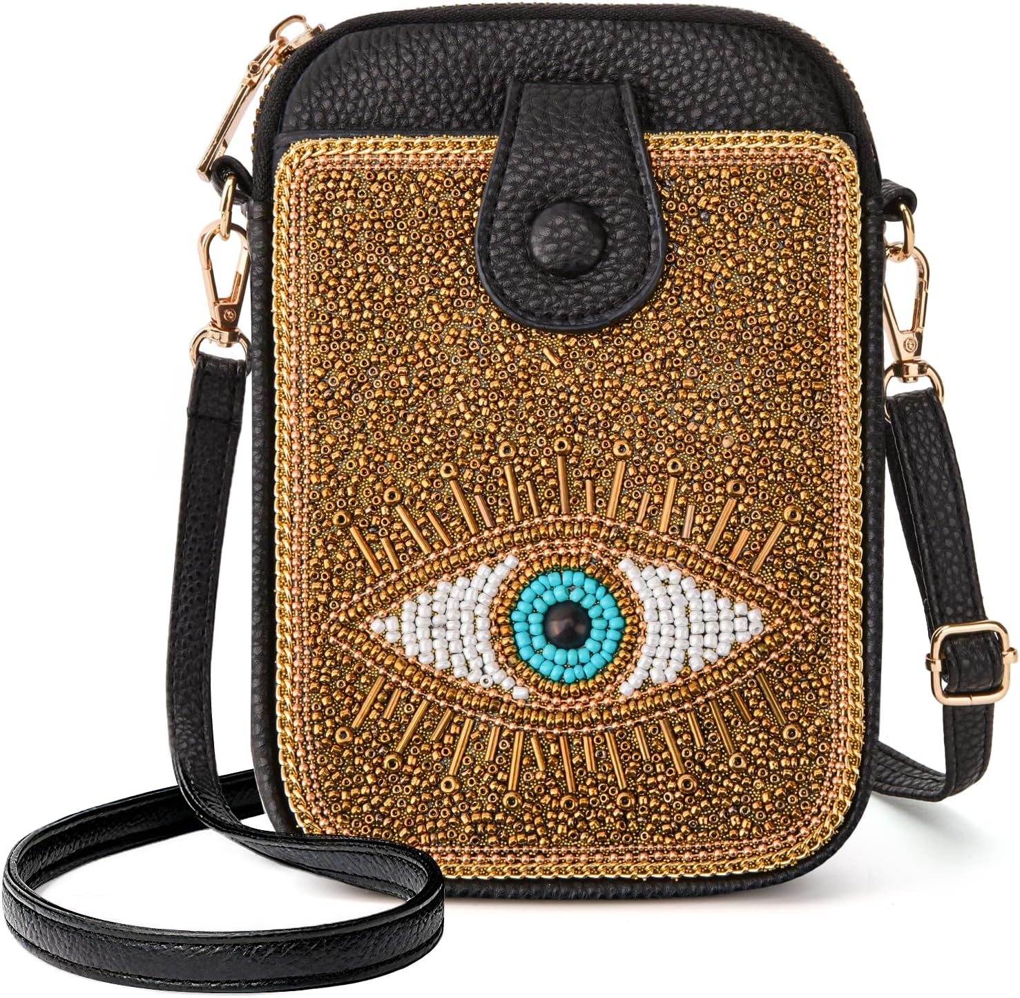 Women's Small Crossbody Cell Phone Bag, Boho Colorful Beaded Purse Wallet with Handmade Cute Patterns