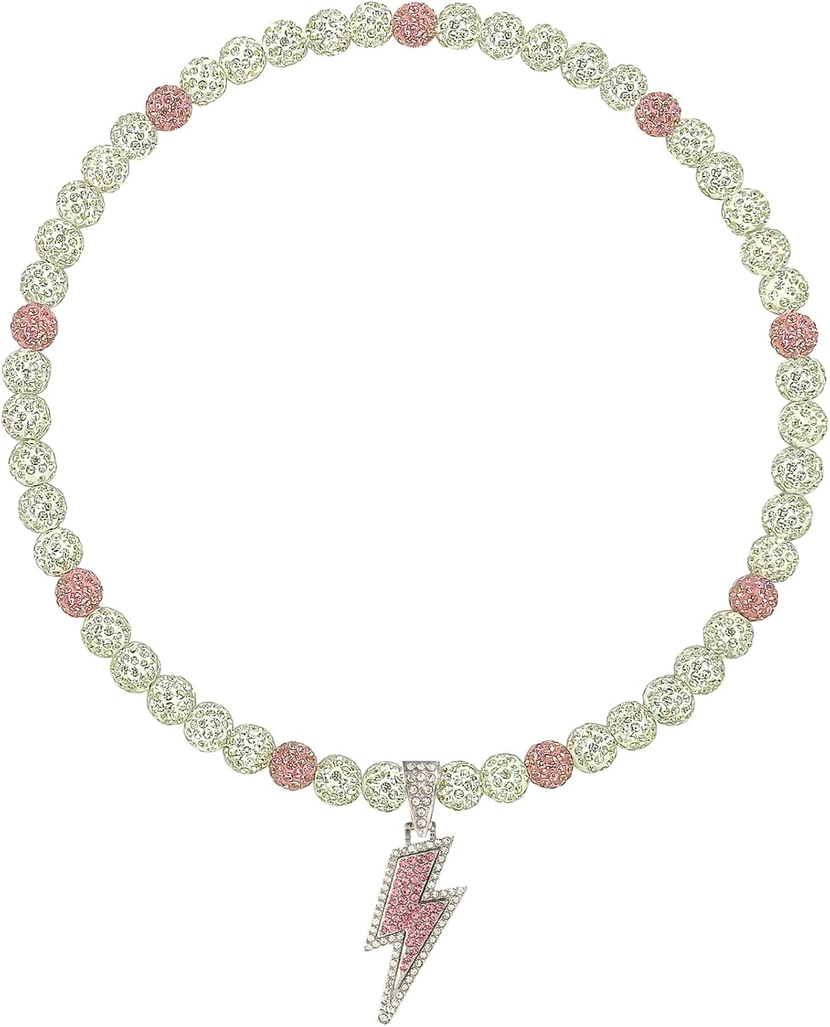 Baseball Necklace for Men 20 Inch Bling Ice Collection Lightning Bolt Pendant Necklace for Women Rhinestone Clay Beaded Discoball Accessories Gifts for Baseball Team Players Lovers