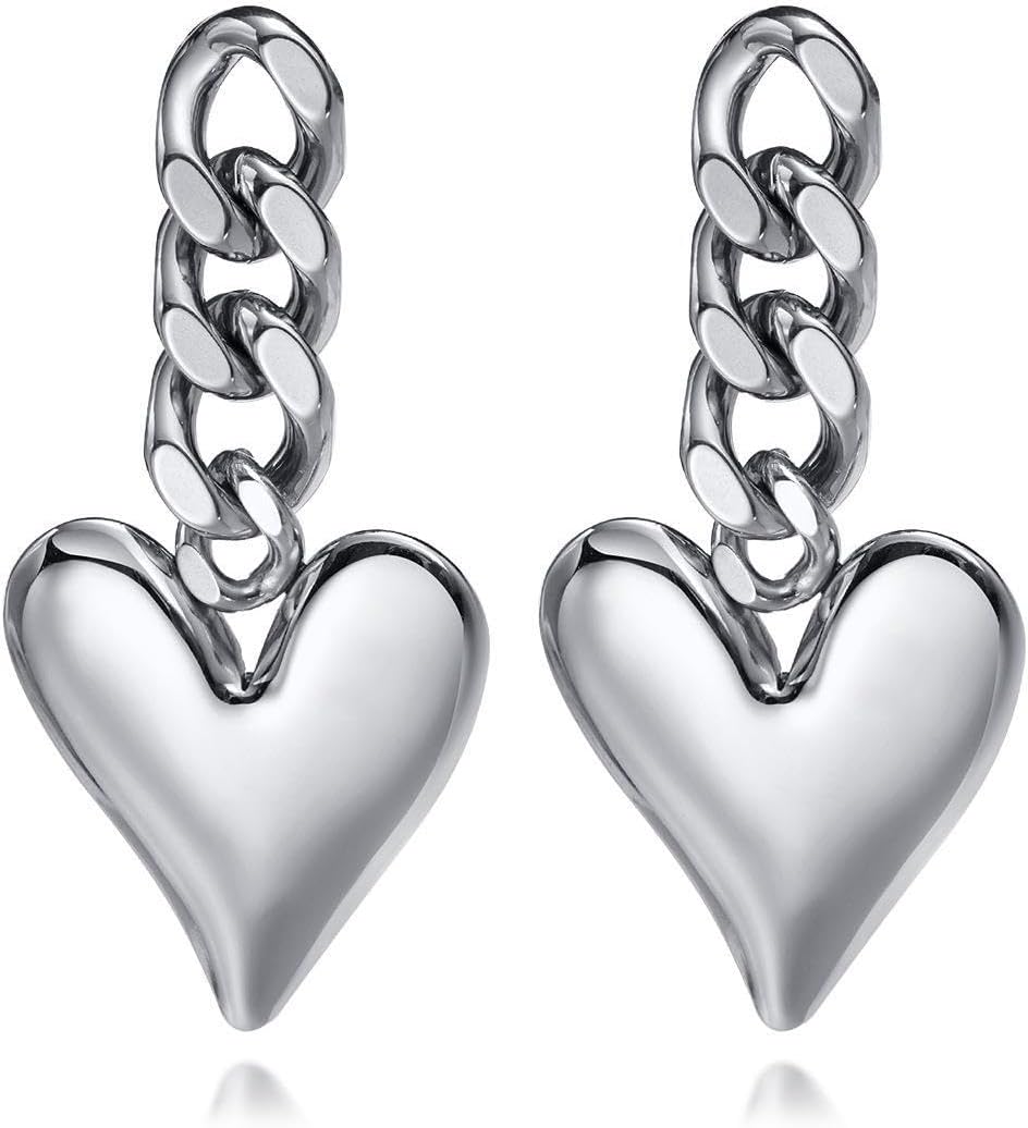 ASHMITA Gold Alloy Heart Earrings Chain Love Earrings Retro Cold Punk Earrings Dangle Drop Earrings Jewelry for Women