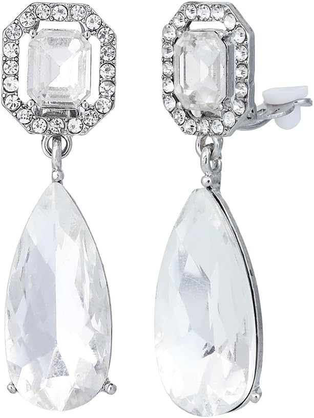 Gorgeous Long Austrian Crystal Teardrop Drop Dangle Clip On Earrings Non Pierced for Women