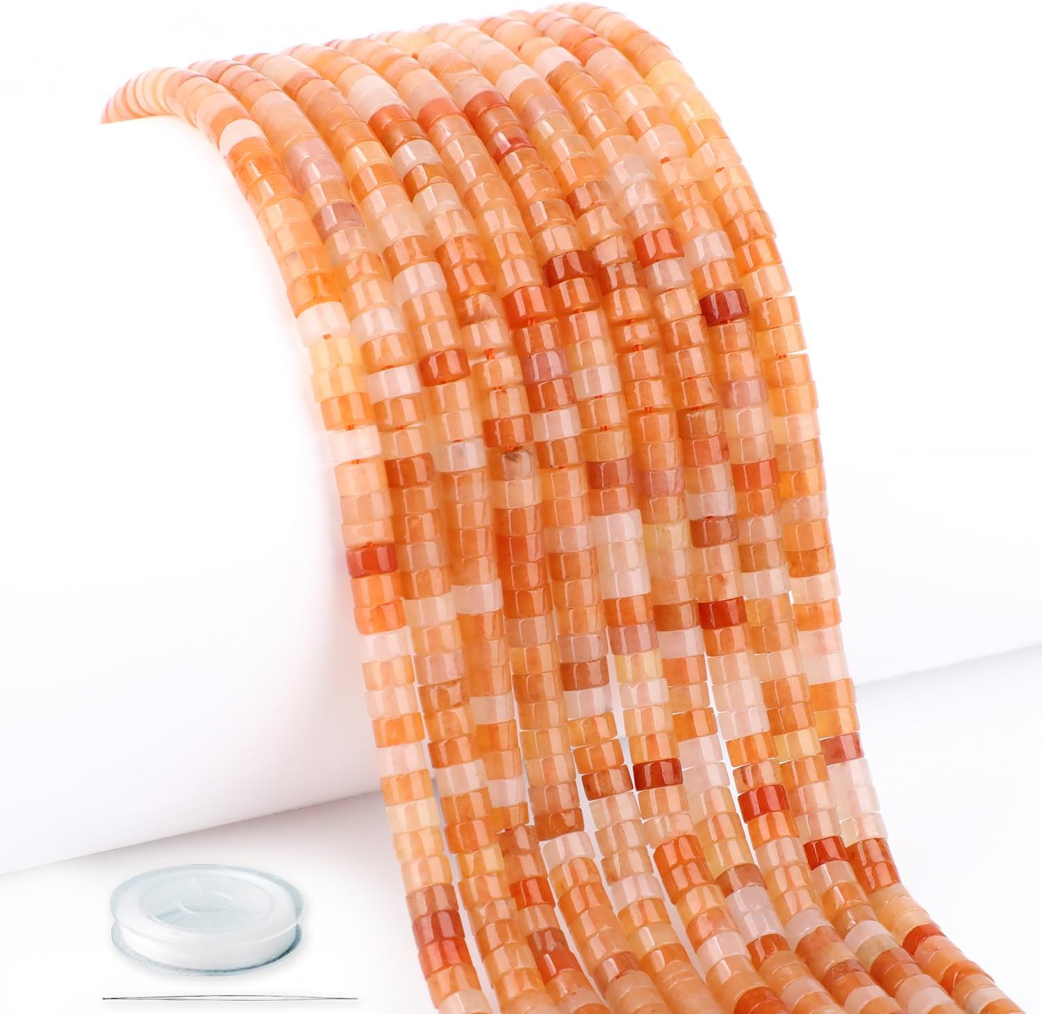 Natural Orange Aventurine Heishi Spacer Beads Loose Semi Precious Flat Round Gemstone Disc Shape Stone for Beading Jewelry Making 4x2mm 15.5"