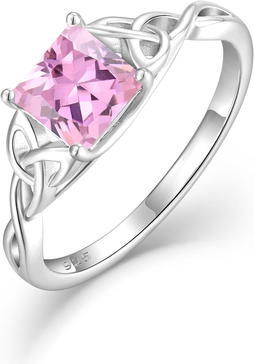 Celtic Knot Ring 925 Sterling Silver Princess Cut Promise Engagement Rings Trinity Irish Ring Birthstone Jewelry Gifts for Women