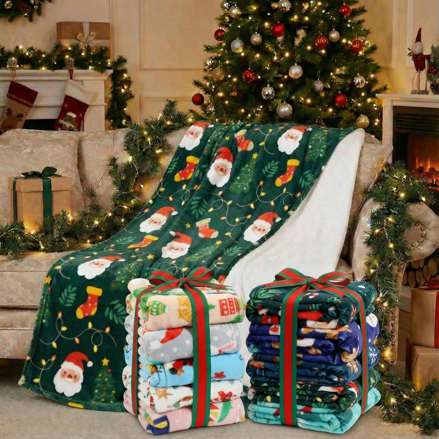 10 Pcs Christmas Throw Blanket, 51"x59" Plush Fleece Holiday Blankets with Santa, Snowman, Reindeer Patterns for Sofa, Bed, Dorm, Xmas Party, Winter Decor and Gift