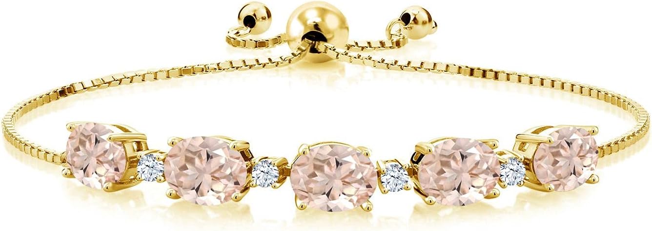 Gem Stone King 5.20 Ct Oval Peach Morganite 18K Yellow Gold Plated Silver Bracelet For Women