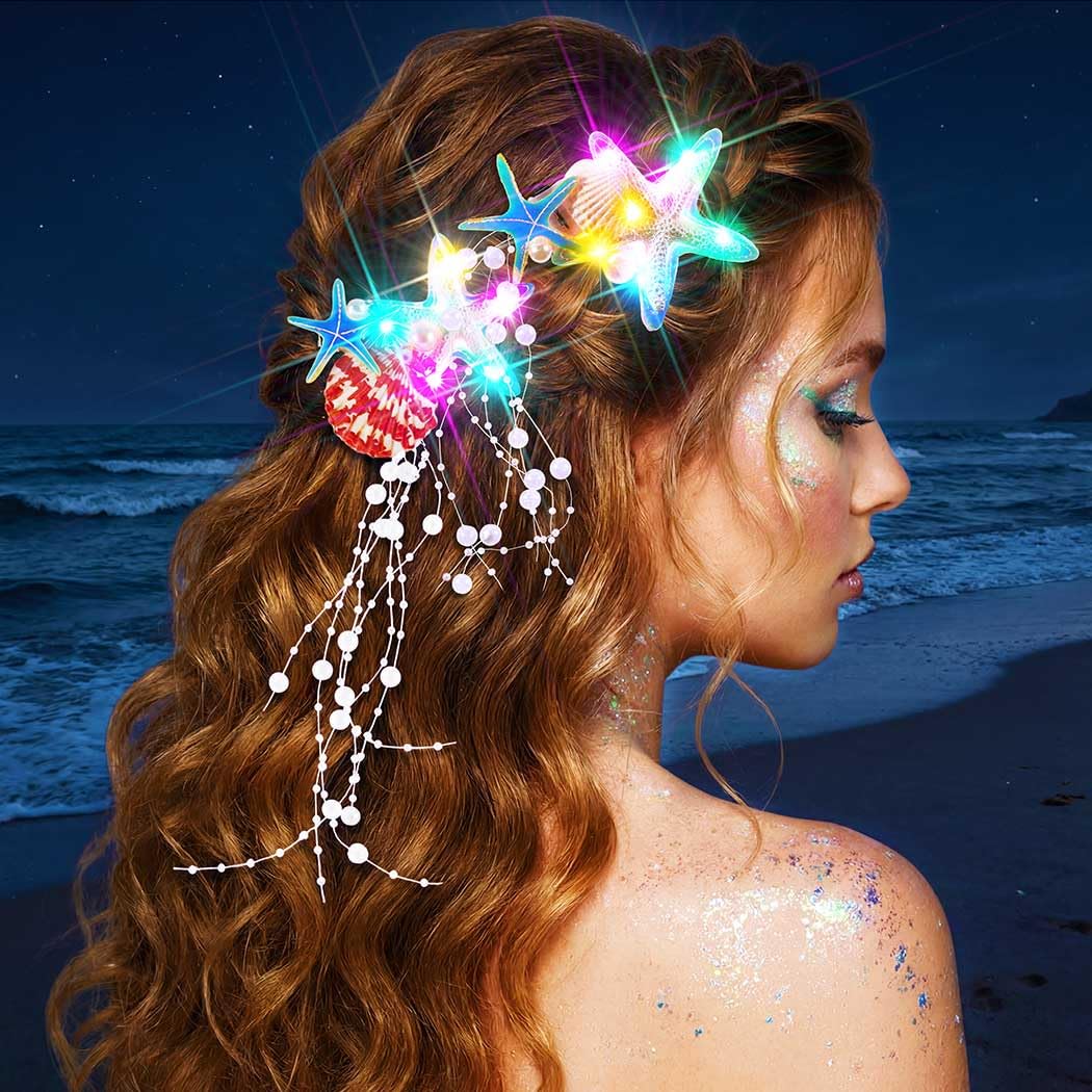 - Mermaid hair clips are made of artificial&tpu starfish, seashell, pearl and led, unique and beatiful.