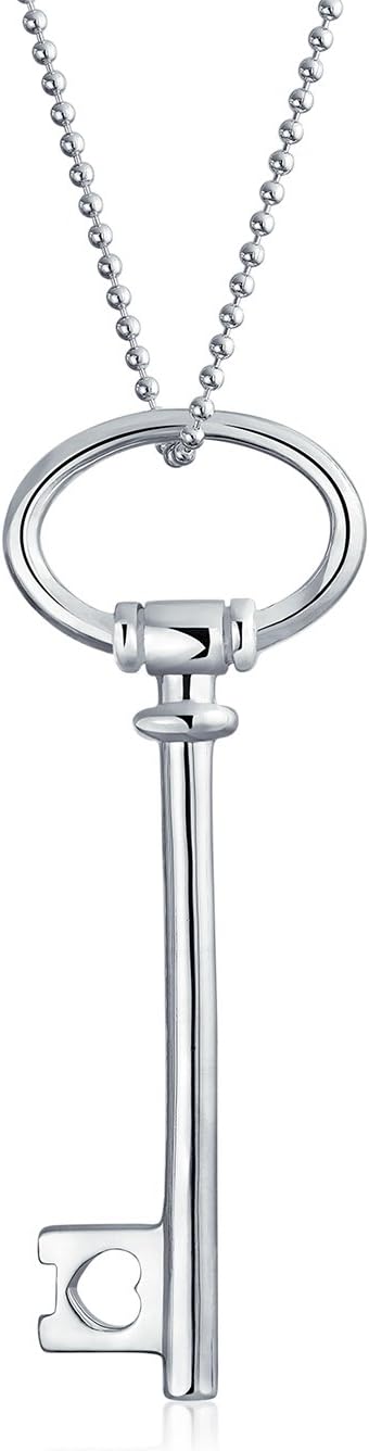 Bling Jewelry Simple Romantic Key to Your Heart Open Heart Key Necklace Pendant For Women Teens Girlfriend Yellow 14K Gold Plated .925 Sterling Silver
