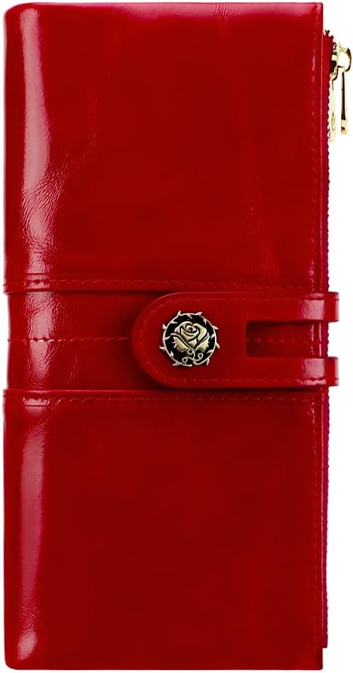 Women's RFID Blocking Wallet Soft Leather Clutch Money Ladies Purse Slim Card Holder Organizer Zip Pocket (3020-Red)