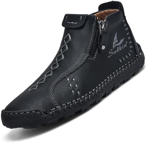 Mens Casual Leather Shoes Ankle Chukka Boots Handmade Side Zipper Mid top Slip On Loafers Fashion Lightweight Walking Driving High Boots