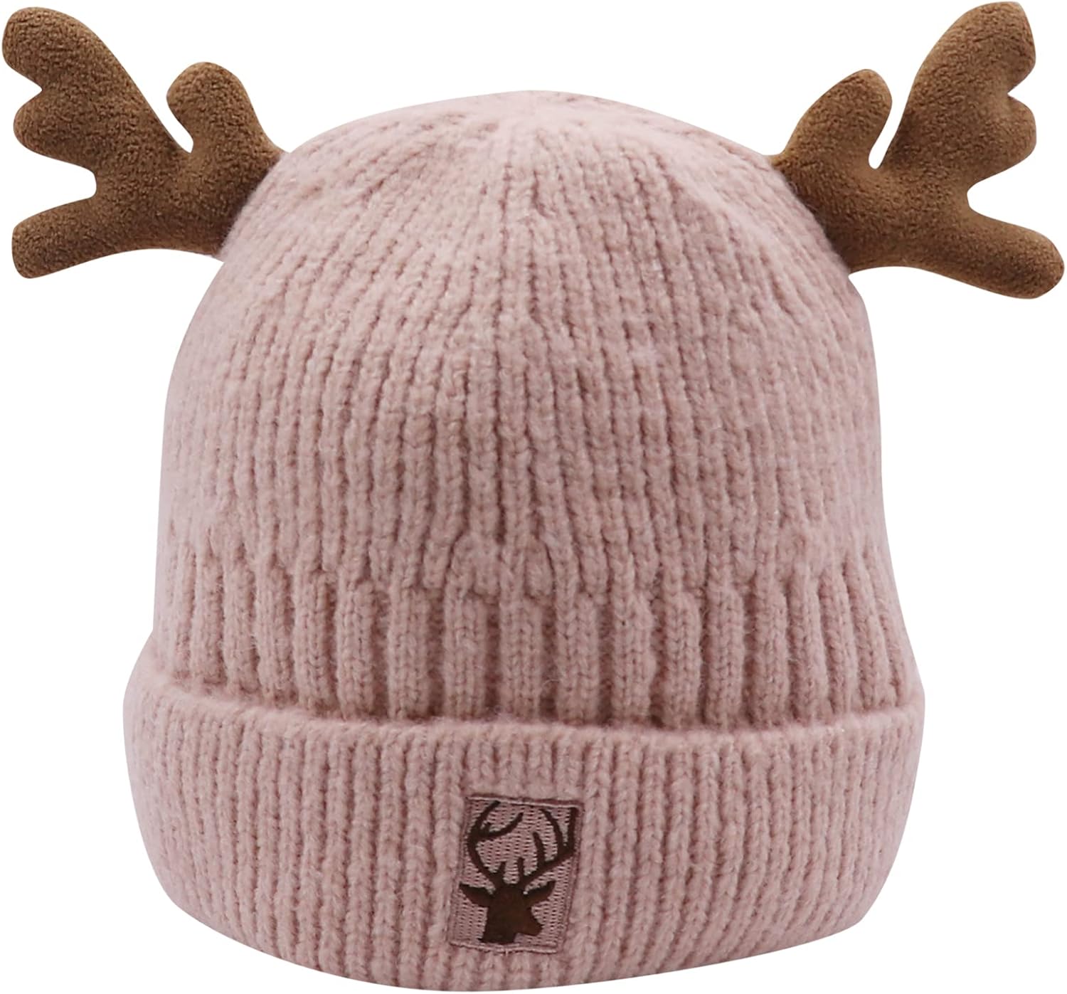 Cute Reindeer Moose Hat Winter Warm Knitted Beanie Cap Fleece Lined Crochet Antler Beanie Ski Skull Cap for Women,Pink