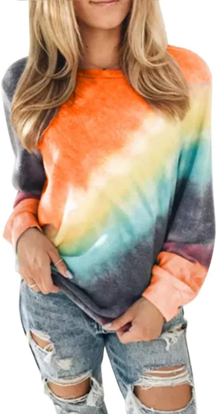 Famulily Womens Tie Dye Sweatshirt Casual Long Sleeve Crewneck Pullover Shirts S-XXL