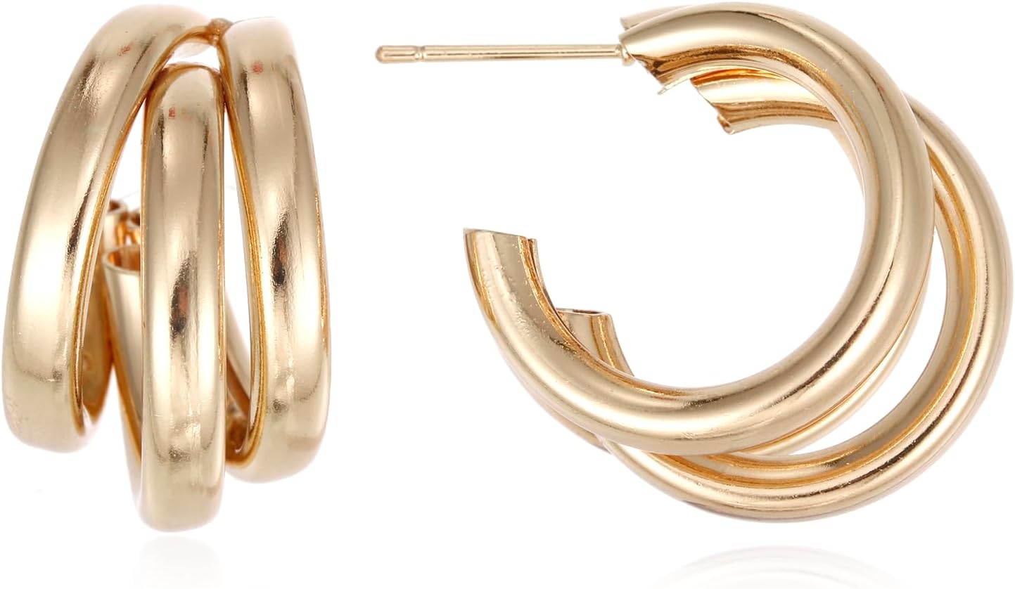 Triple Hoop Earrings, Split Hoop Huggie Earrings Trendy Chunky Earrings for Women