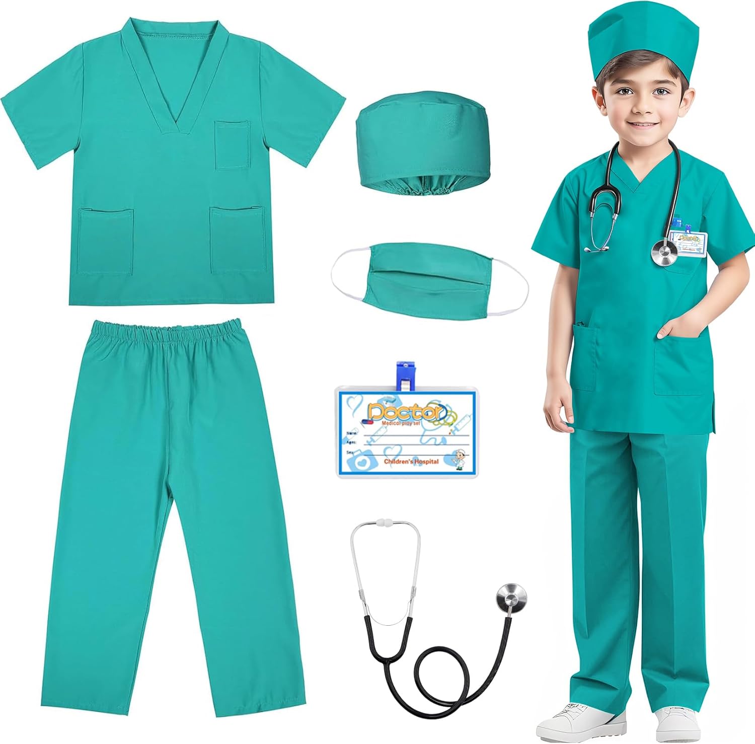 RioRand Doctor Costume for Kids,Toddler Nurse Scrubs with Accessories Christmas Dress Up Cosplay For Boys Girls 3-12 Years