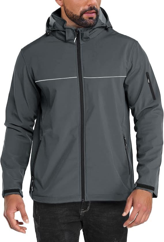 Yousify Mens Softshell Jacket Fleece Lined Windbreaker Lightweight Rain Waterproof Hooded Jackets for Hiking