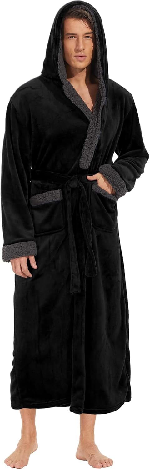 ccko Mens Robe with Hood, Big and Tall Warm Soft Plush Robes for Men, Men's Bathrobe with Pockets for Spa Bath Shower