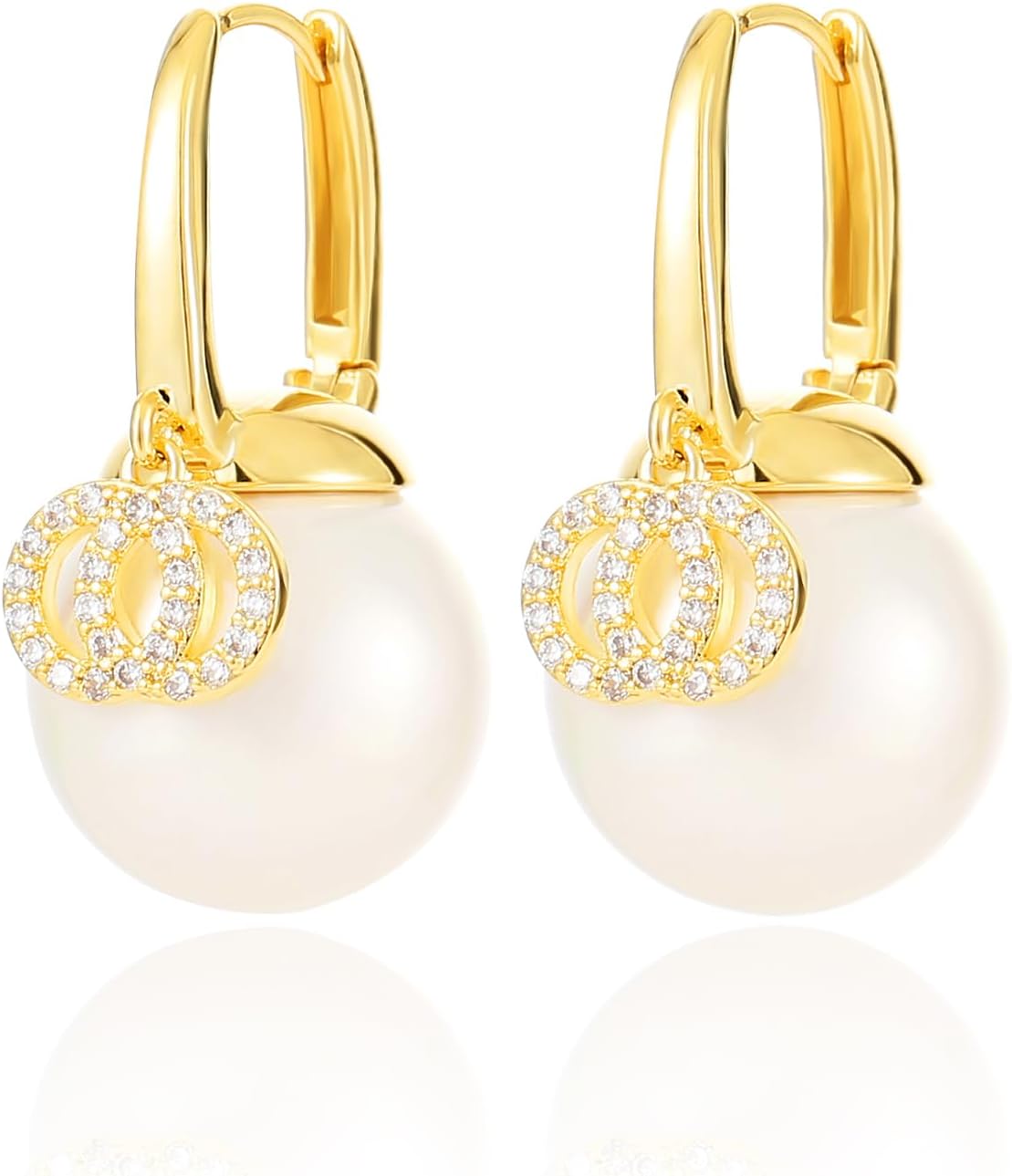 14k Gold Plated Pearl Rhinestone Drop Earrings for Women Jewelry