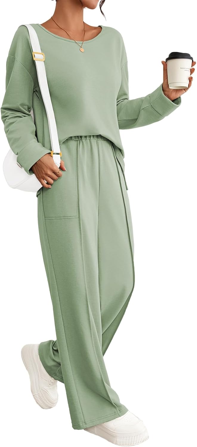Viottiset Women's 2 Piece Set Casual Outfits Knit Top Wide Leg Sweater Long Sleeve Lounge Set Sweatsuit