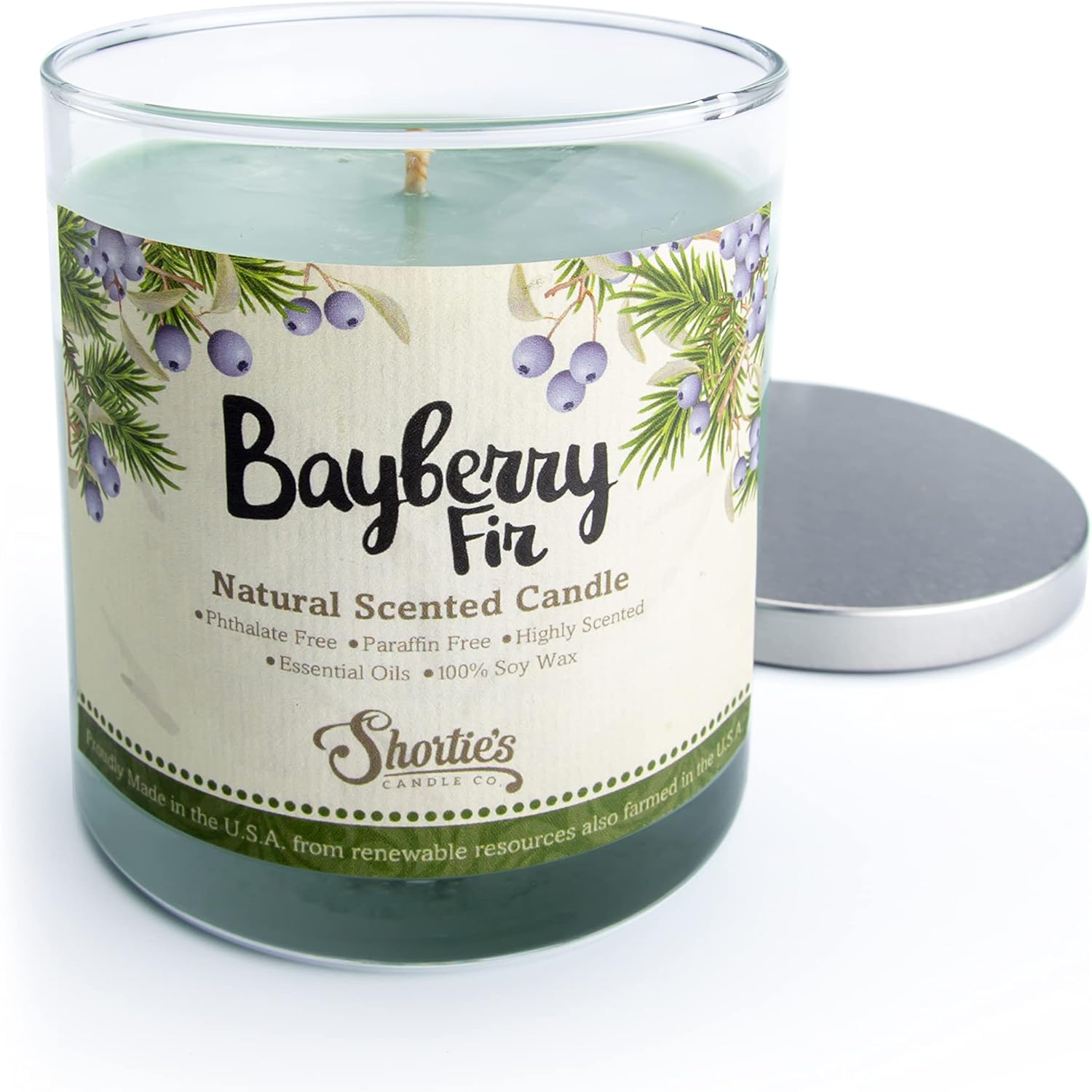 Bayberry Fir Scented Natural Soy Candle, Essential Fragrance Oils, 100% Soy, Phthalate & Paraben Free, Clean Burning, 9 Oz.