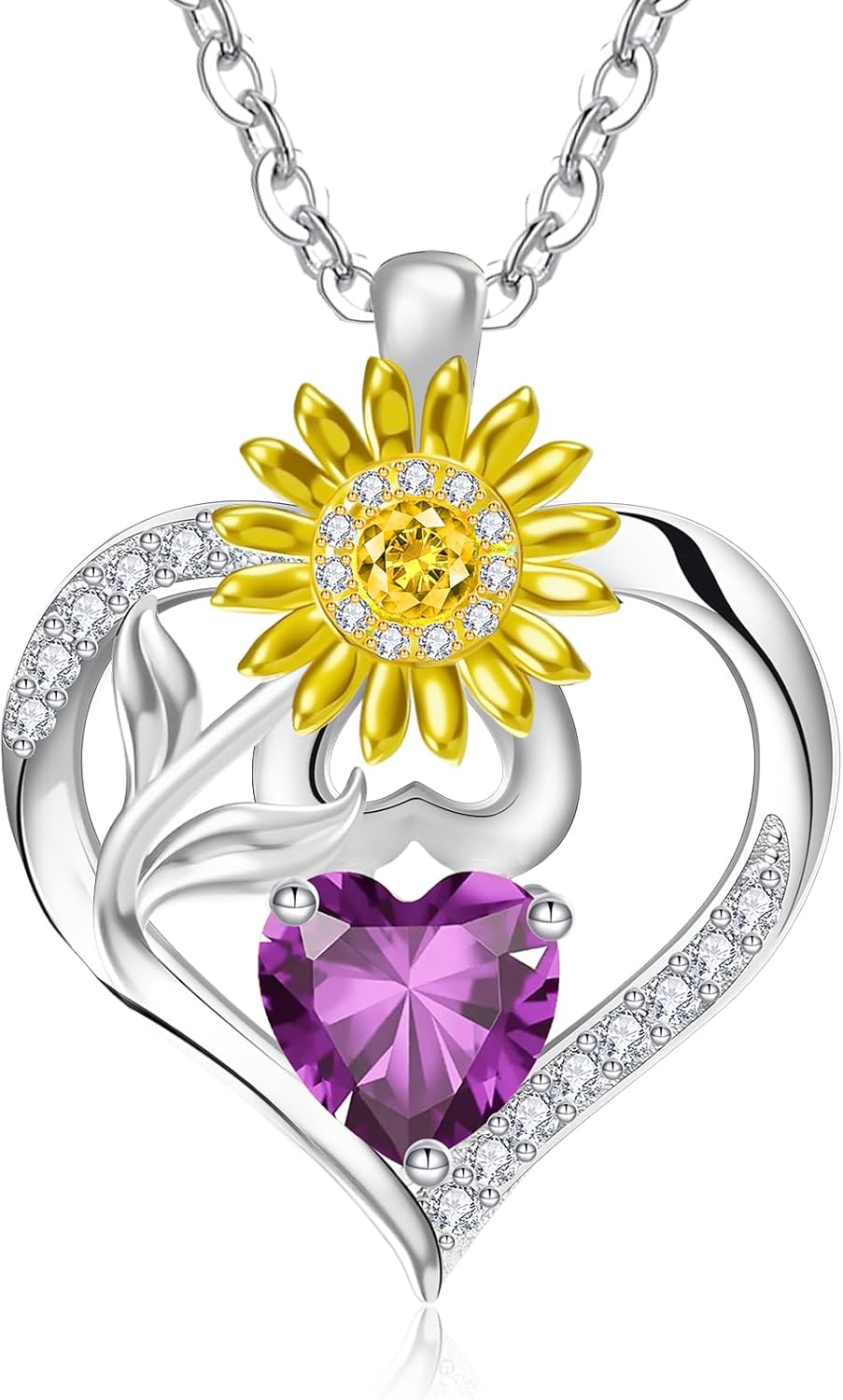 RIVIKO Valentine's Day Gifts for Her-Sunflower Birthstone Necklace for Women,925 Sterling Silver Heart Pendant,Anniversary Birthday Gifts for Women,Birthstone Jewelry for Wife Mother