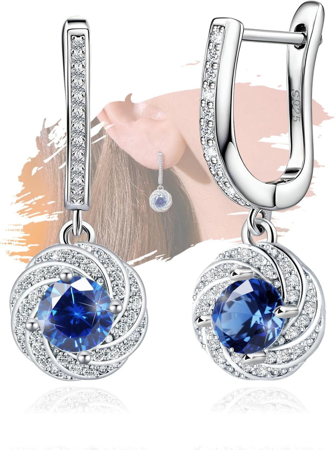 Hoop Dangle Earrings for Women Sterling Silver Hypoallergenic Sparkly Round Cubic Zirconia Halo Hoop Dangling Earrings Classic Spiral CZ Loop Earring with Charms Gifts for Bride Wife Wedding