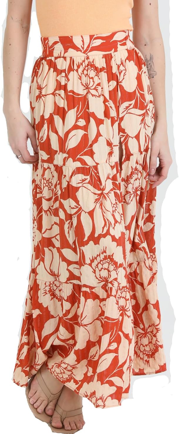 Angie Womens Women's Printed Maxi Tiered Skirt with Slit