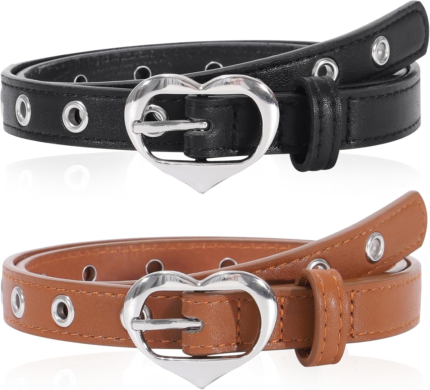Kajeer Girls Belt for Kid,2 Pcs Leather Belt Durable Hollow Cute Heart Buckle Grommet Youth Toddler Belt for Uniform Casual