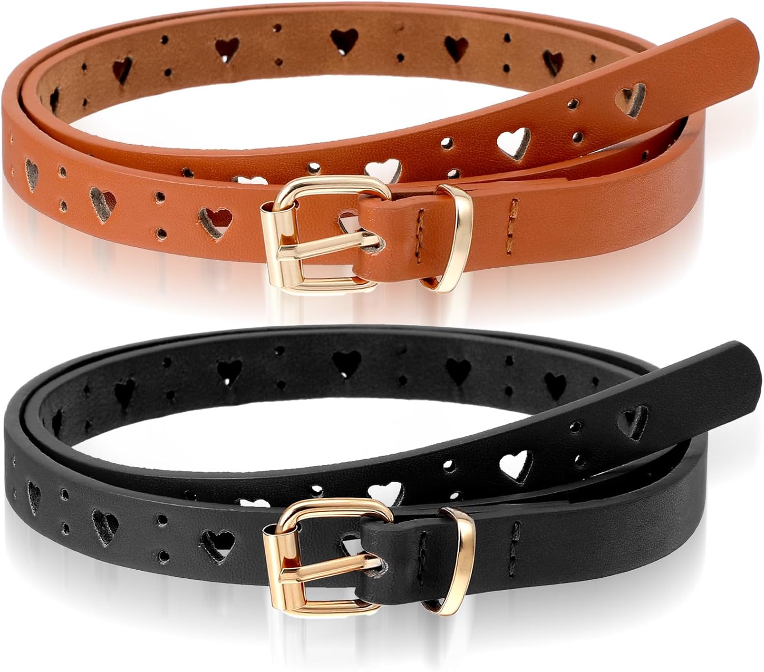Teaaha 2 Pcs Kids Leather Girls Belt with Heart Buckle, Adjustable Elastic Belts for Boys and Girls, Stretch Belt for Jeans and Dresses