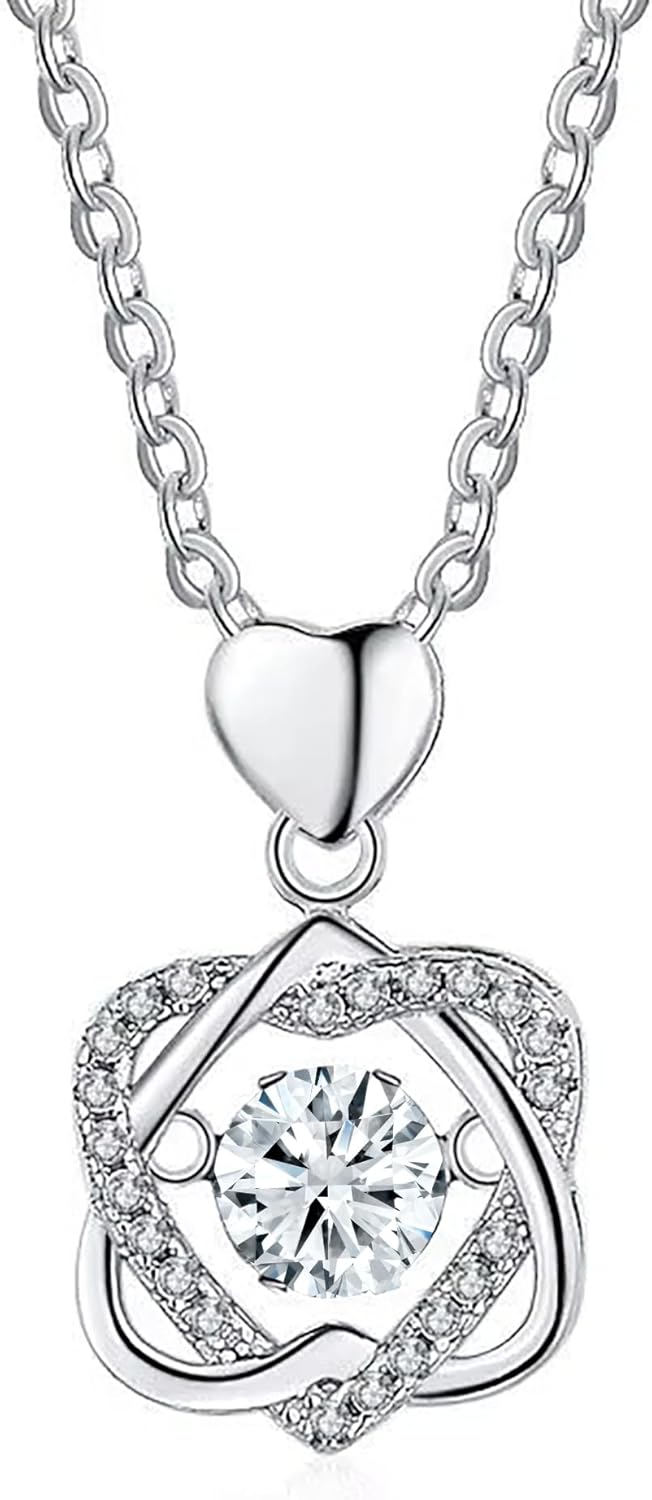 Dazzlingrock Collection GRA Certified D Color VVS1 0.50 Carat Round Center Moissanite & Side Cubic Zirconia Eternal Heart Pendant Necklace with 18 inch Silver Chain for Her in White Gold Plated Sterling Silver