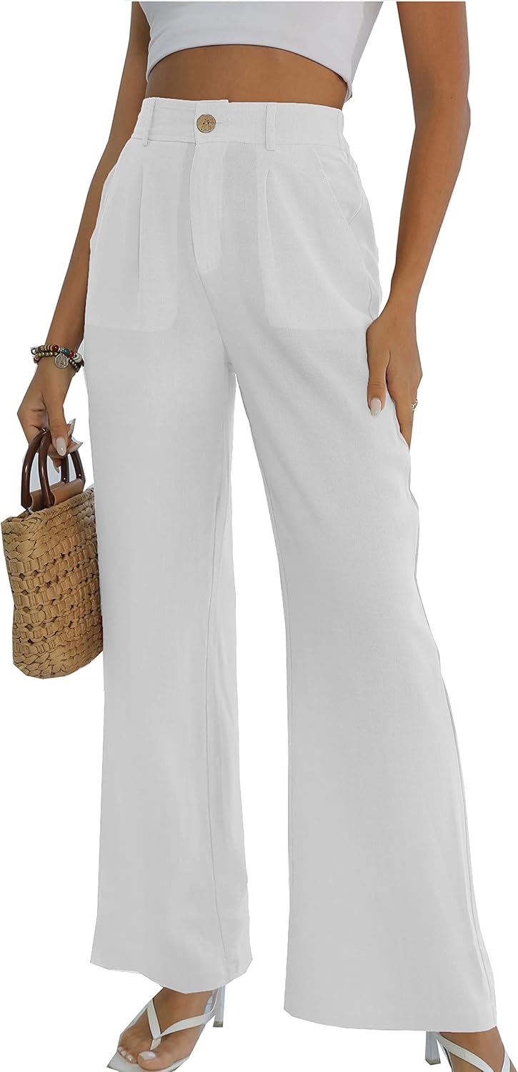 Fakanhui Women's Cotton Linen Wide Leg Pants High Elastic Waist Casual Business Work Trousers