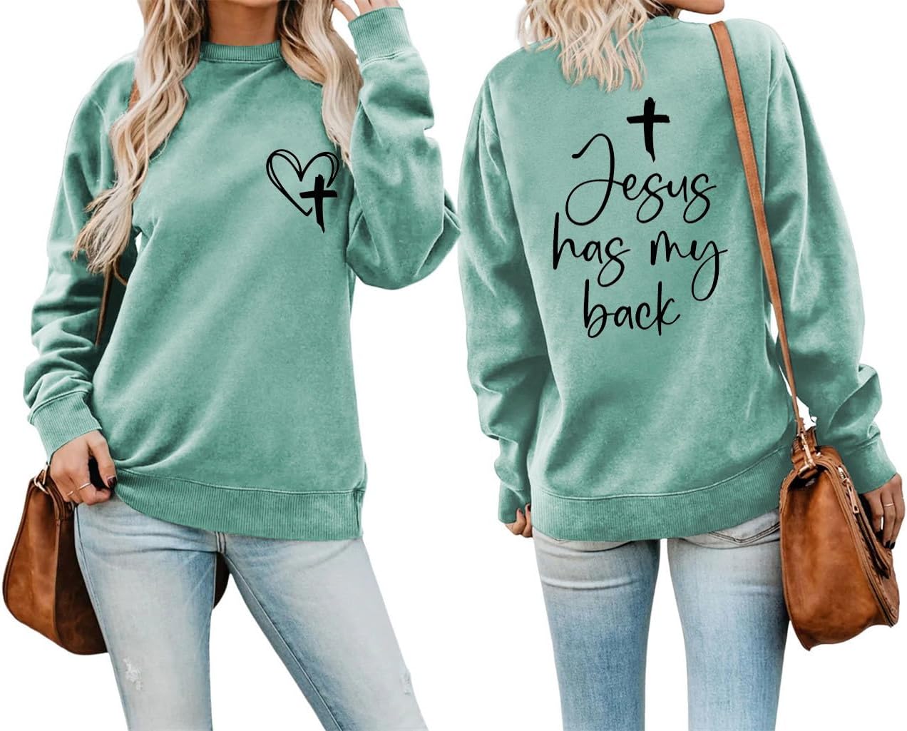 Jesus Has My Back Christian Sweatshirt Women Religious Faith Shirt Long Sleeve Bible Verse Inspirational Pullover Top