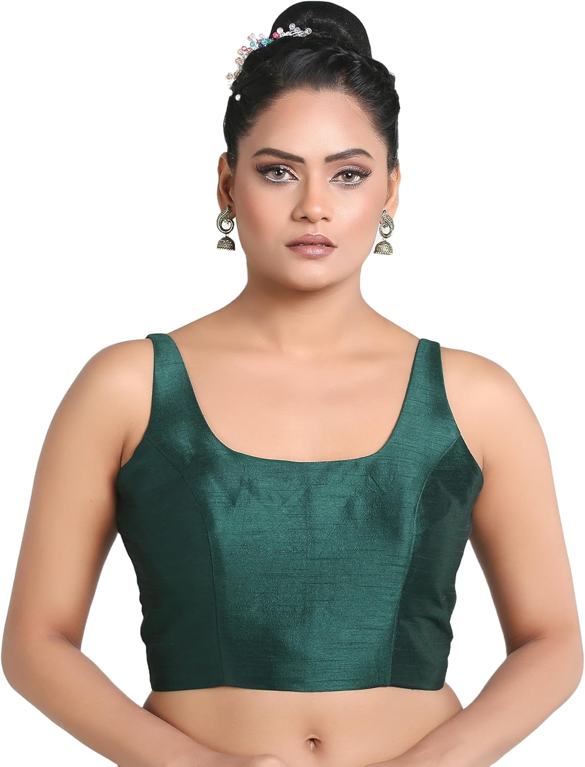 Womens Solid Pattern Sleeveless Padded Readymade Saree Blouse
