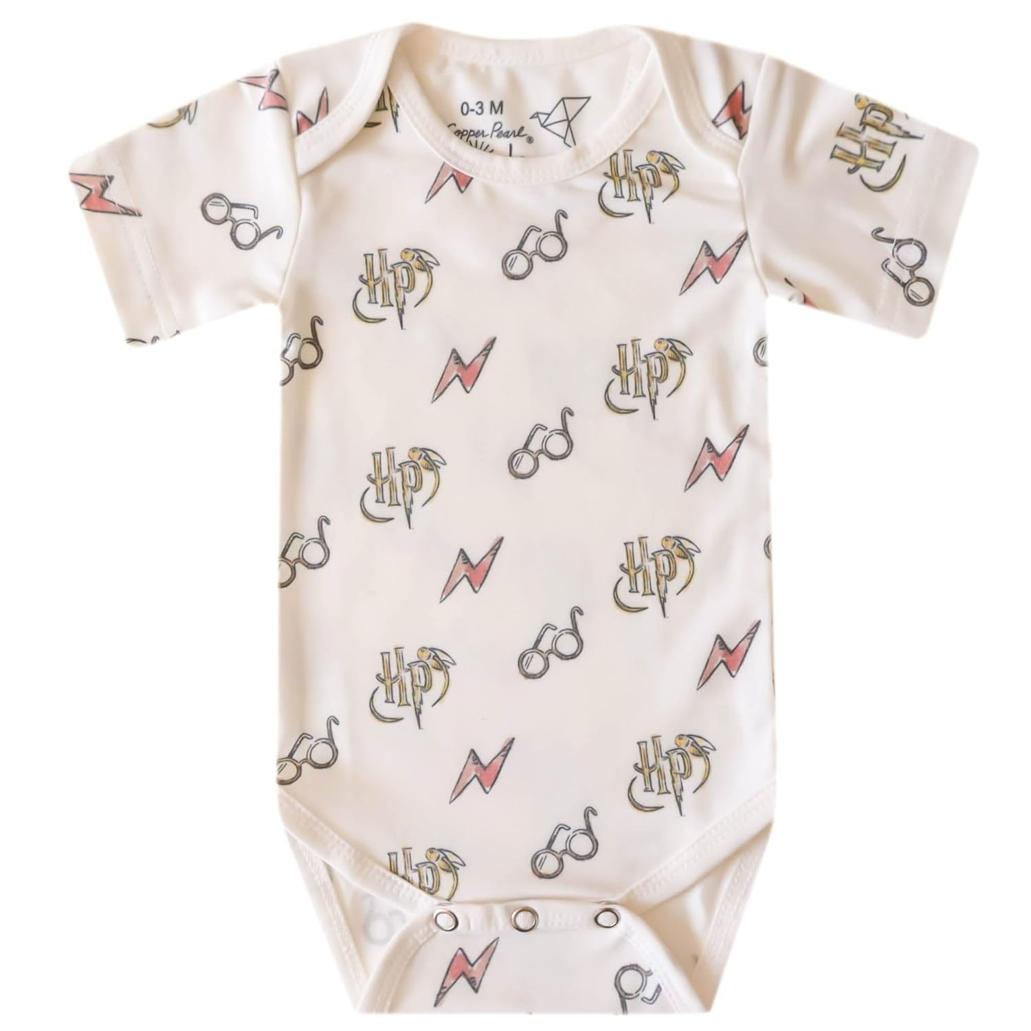 Copper Pearl Short Sleeve Bodysuit Baby: Ultra Soft Bodysuits for Newborns, Boys, Girls, and Infants - Stylish, Comfortable, Overlap Shoulders, Premium Knit Fabric - Harry Potter™, Newborn