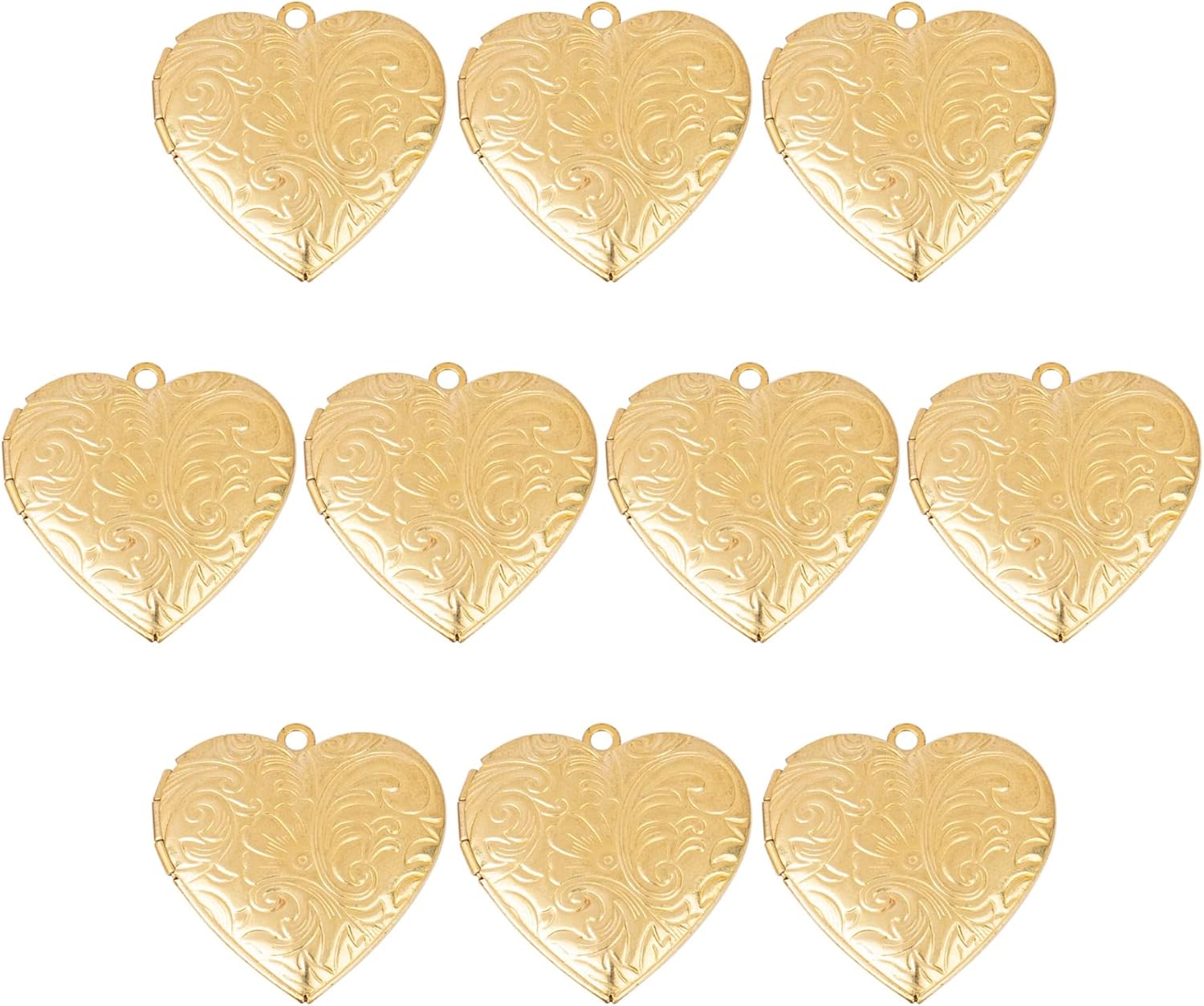 Framendino, 10 Pack Gold Stainless Steel Heart Locket Photo Picture Charms Pendants for Jewelry Making