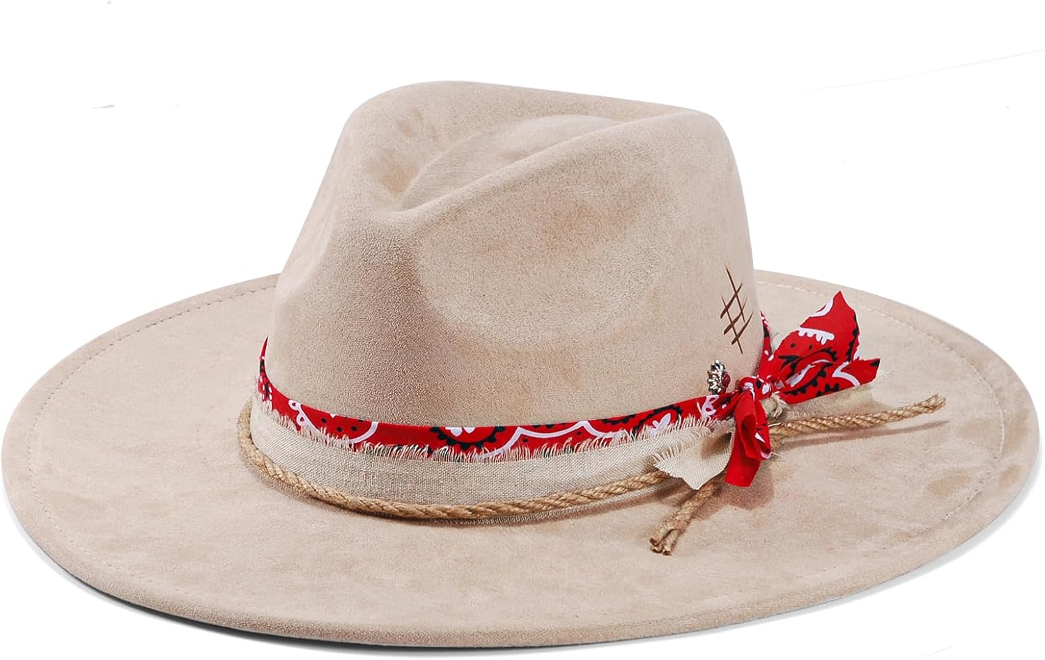 Gossifan Western Cowboy & Cowgirl Hat Felt Wide Brim Women Men Fedora Hats