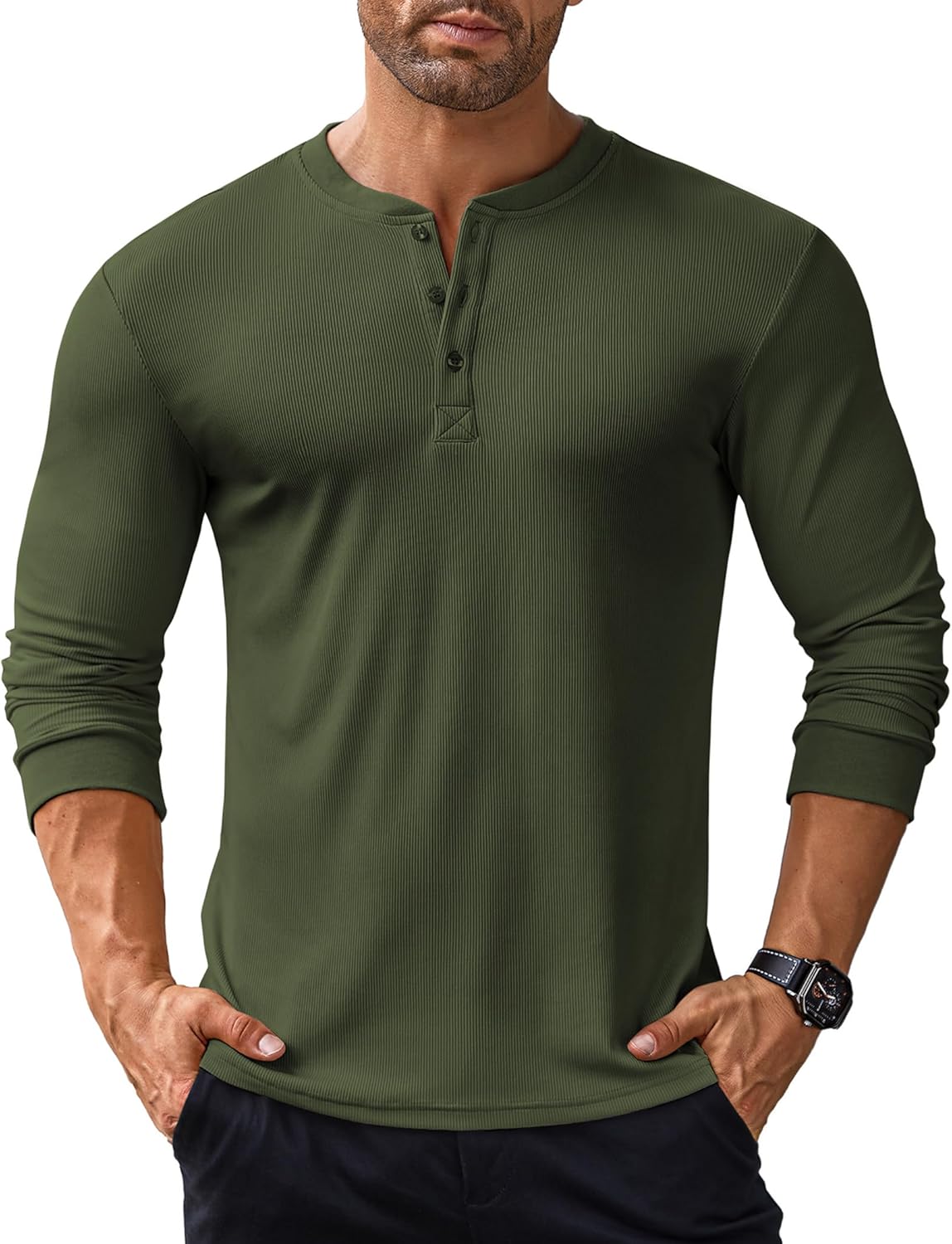COOFANDY Men's Long Sleeve Henley Shirts Stretch Ribbed T-Shirts Fashion Casual Basic Tops