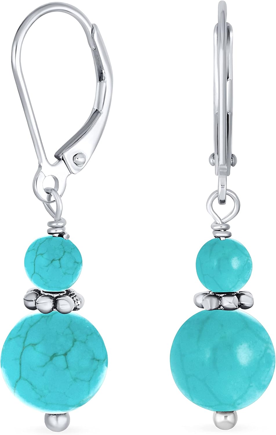 Gemstone Natural Blue Lapis Lazuli Red Carnelian Green Aventurine Boho Bali Milgrain Edged Beaded Rondel Separator Double Ball Round Drop Dangle Earrings For Women Teen .925 Sterling Silver Lever back