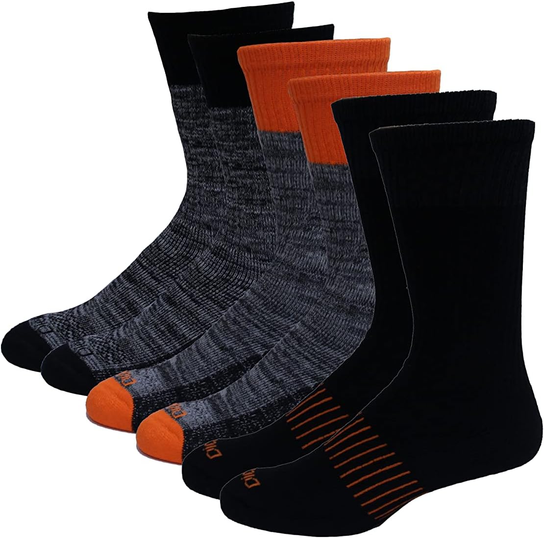 Dickies Men's Dri-Tech Performance Work Crew Socks 6 Pair,Black Asst, Men's 6-12 Shoe Size