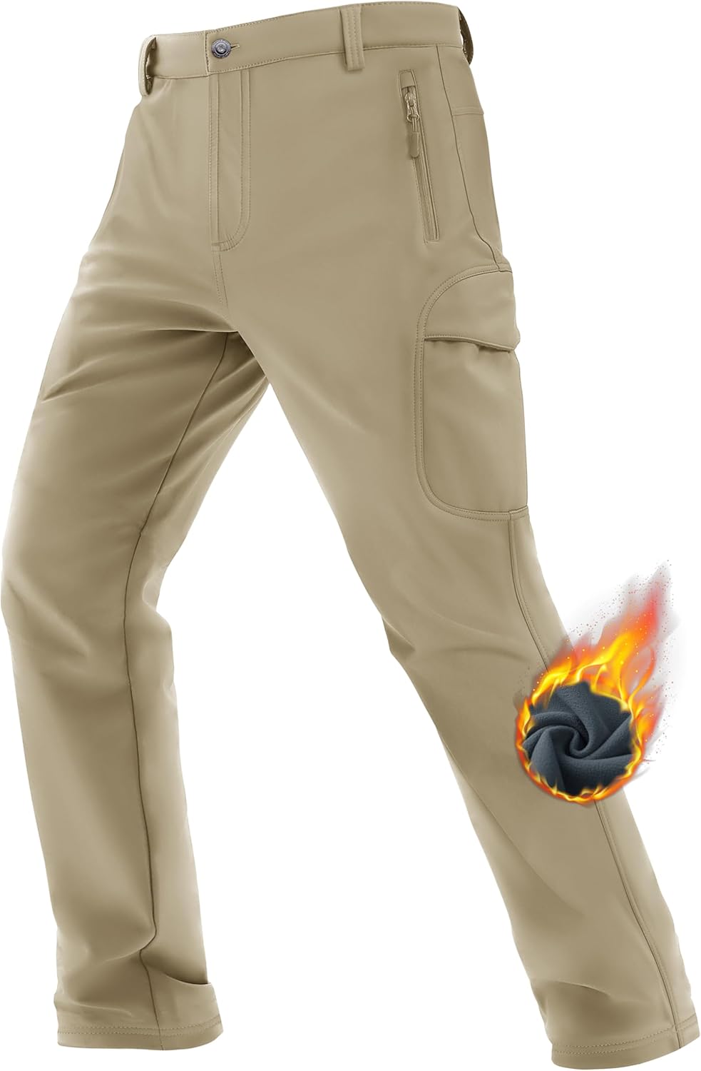 TACVASEN Men's Winter Hiking Pants Fleece Lined Cargo Tactical Work Softshell Snow Ski Waterproof Pants with Pockets