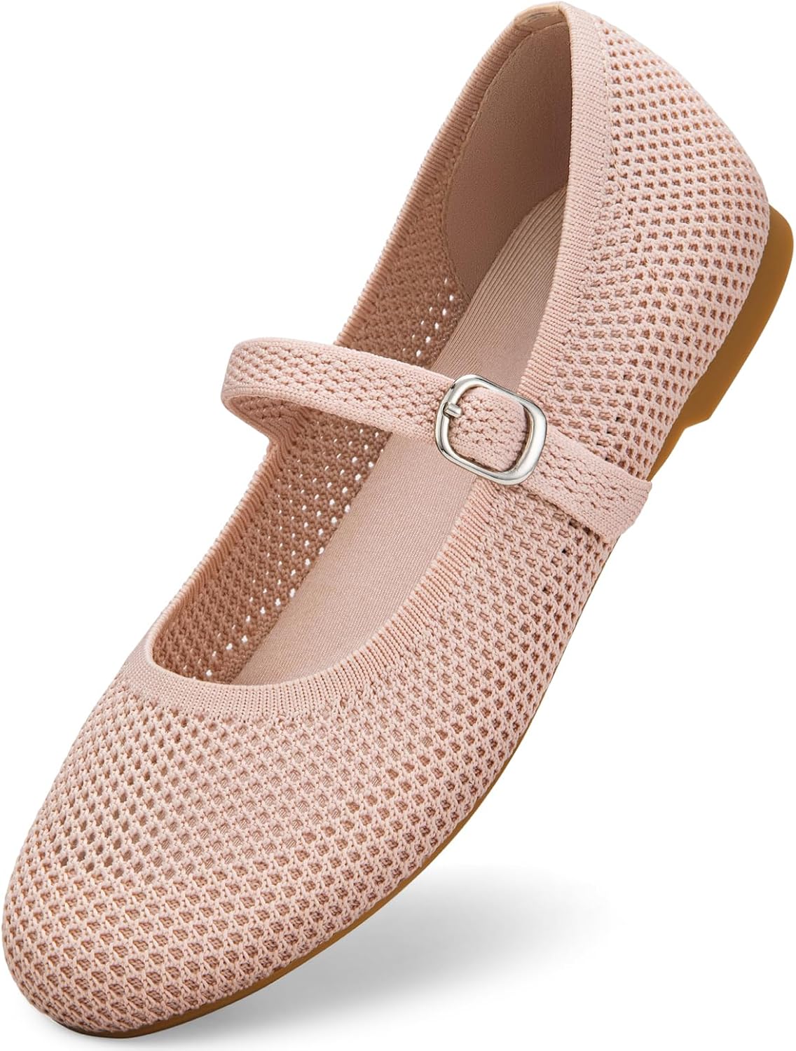 Tanamo Mary Jane Shoes Flats for Women Round Toe Shoes Ballet Flats Comfortable Dressy Adjustable Straps Casual Office Work Wedding Washable Knit Slip On Pink