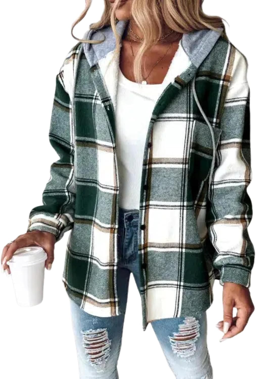Striped Print Multicolor Drawstring Hoodies with Pockets Casual Open Front Button Down Sweatshirt Womens Fashion Tops