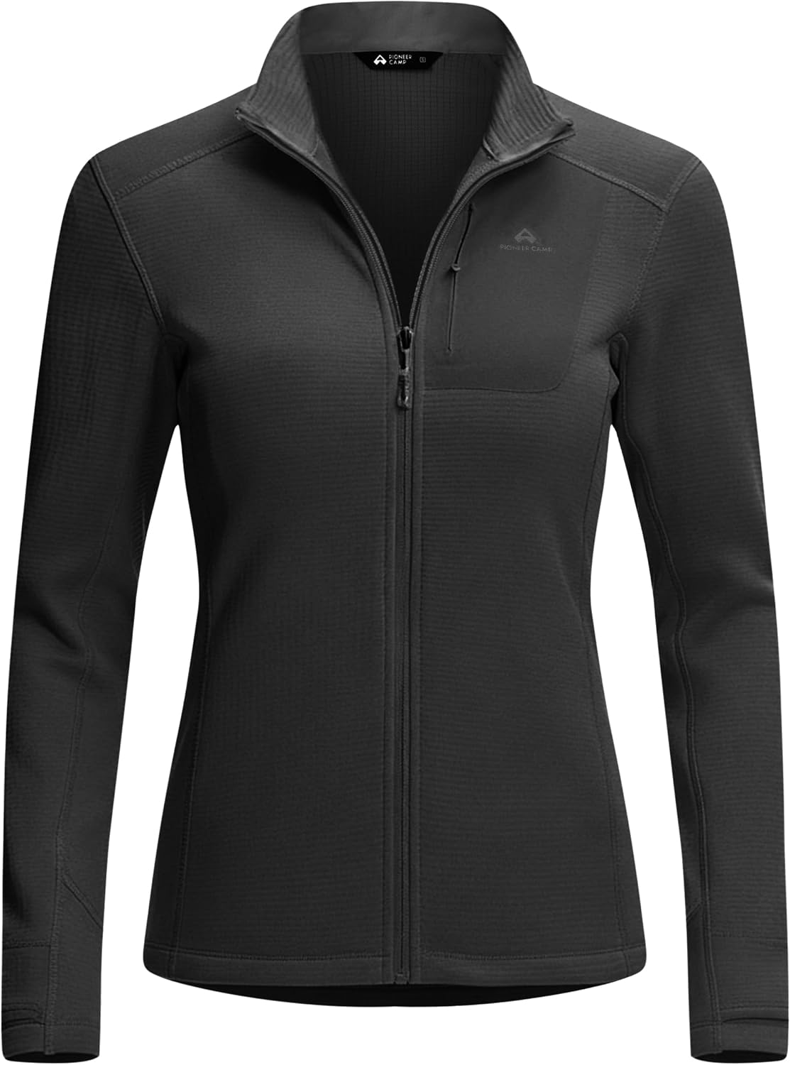 Pioneer Camp Women's Grid Fleece Lined Running Jacket Full Zip Winter Athletic Workout Scrub Jacket with Thumb Holes Midlayer