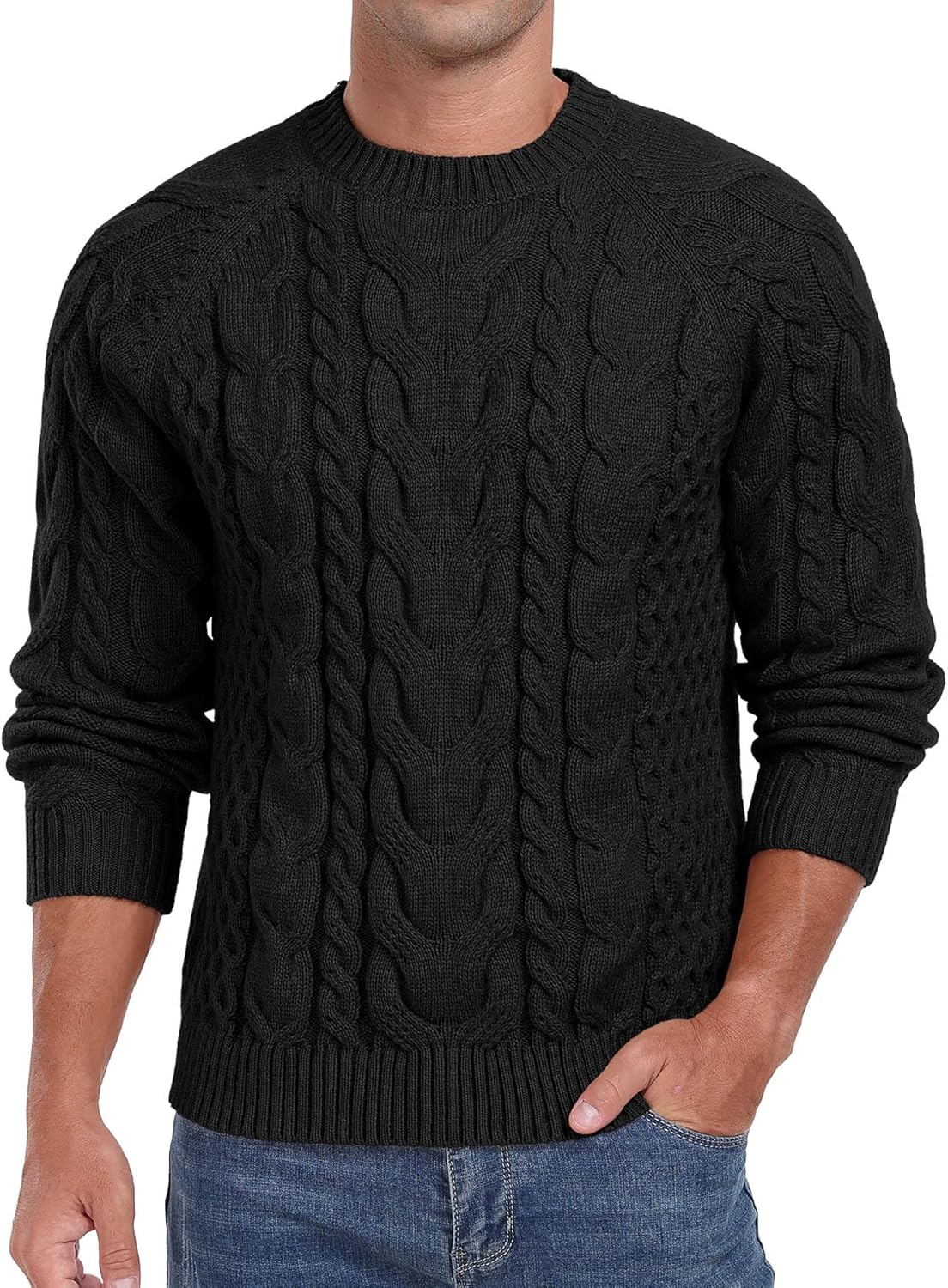 Askdeer Men's Pullover Sweater Cable Knit Crewneck Sweater Long Sleeve Classic Casual Sweater Tops