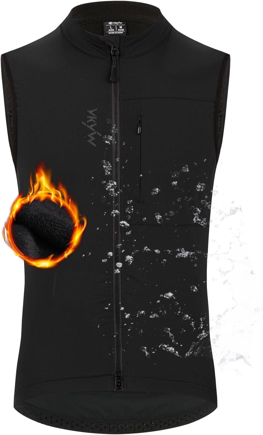 YKYWBIKE Cycling Vest for Men Sleeveless Cycling Jacket Fleece Biking Vest Ykk Full Zip Cycling Gilet Windproof Bike Vest Waterproof Bicycle Gilet