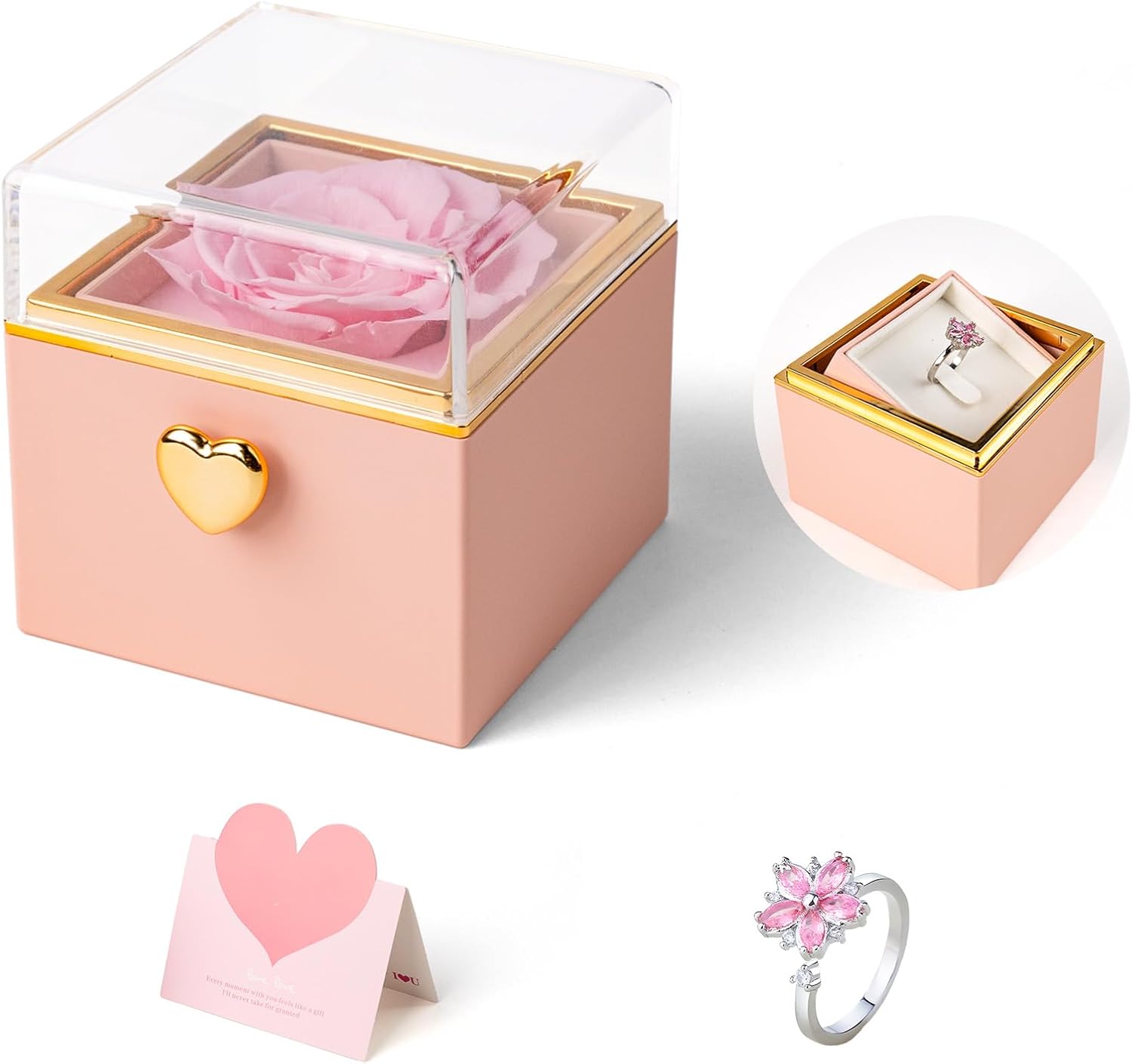 - Special Feature: Adjustable Ring, Funny flip rose ring box, Preserved rose jewelry box for women