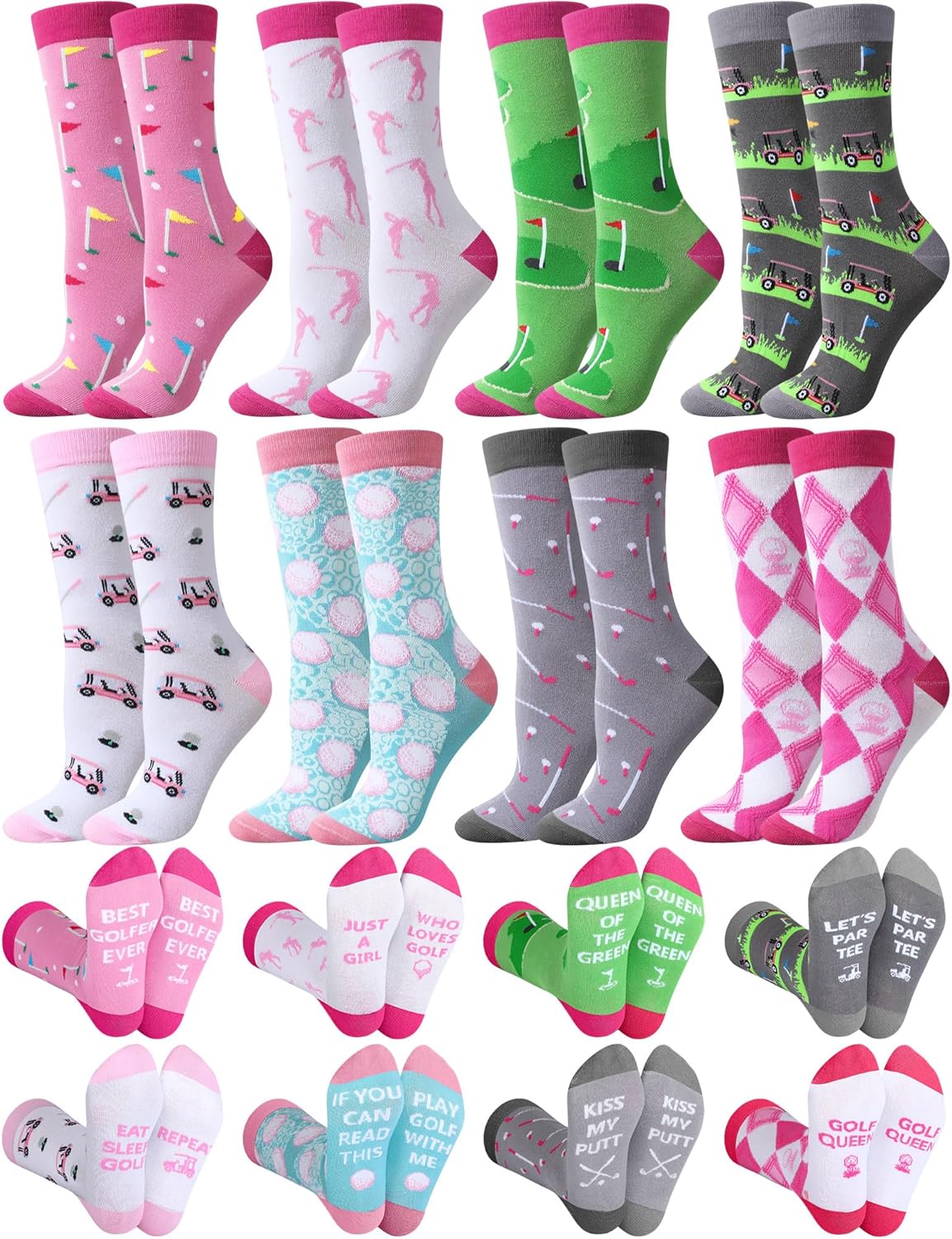 Patelai 8 Pairs Women Golf Socks Golf Theme Crew Socks Novelty Casual Sport Accessories for Women Golfers