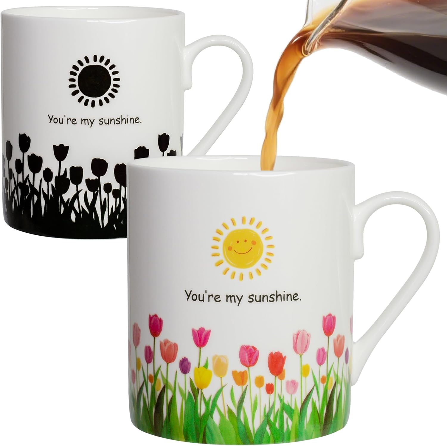 - MAGICAL COLOR CHANGE: After pouring hot water, the warmth of the sun will shine on the earth, and the black floral pattern will turn into a bright tulip bush, which you can use to express “you are my sunshine” to those you are grateful to.