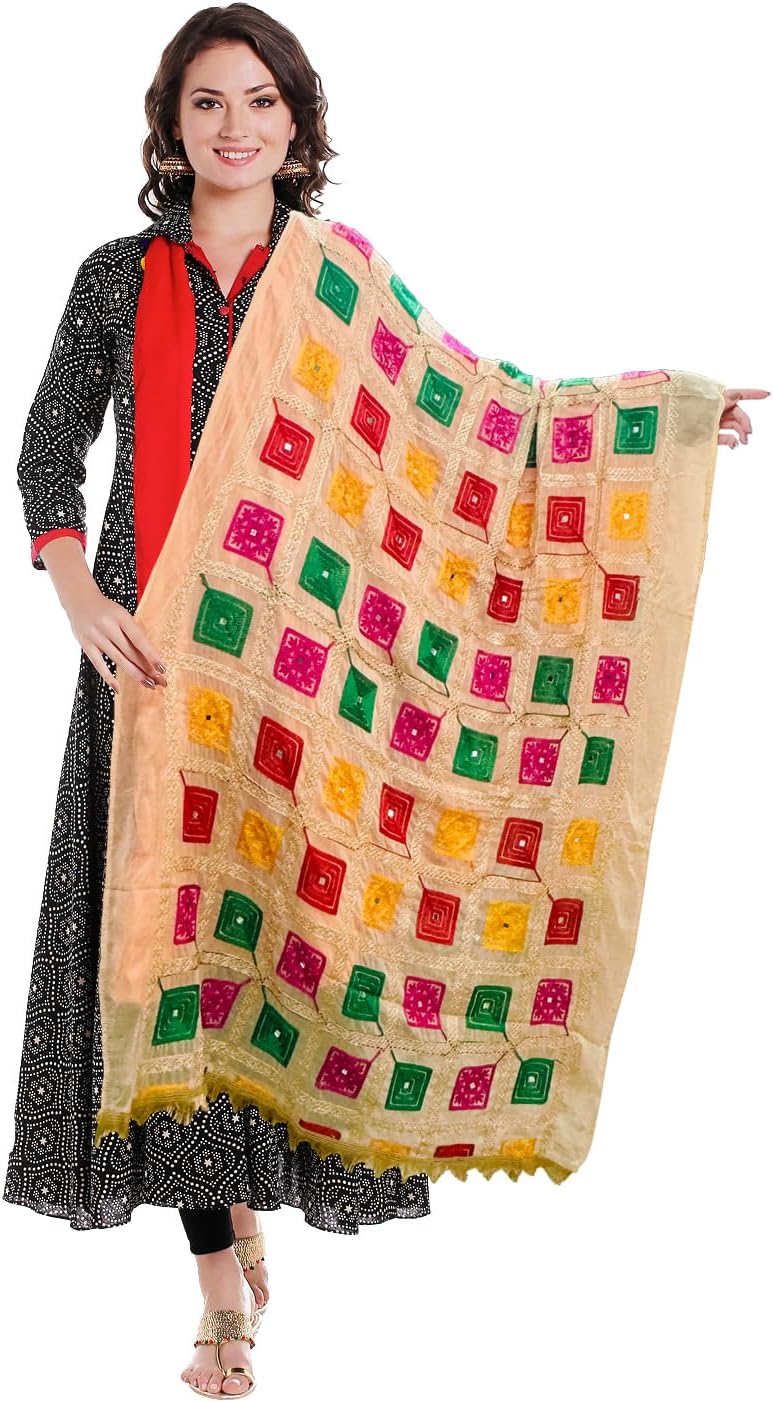themilestocks Woman's Embroidered Chiffon Garba Dupatta Navratri Wrap Indian Bridal Wedding Phulkari Stole
