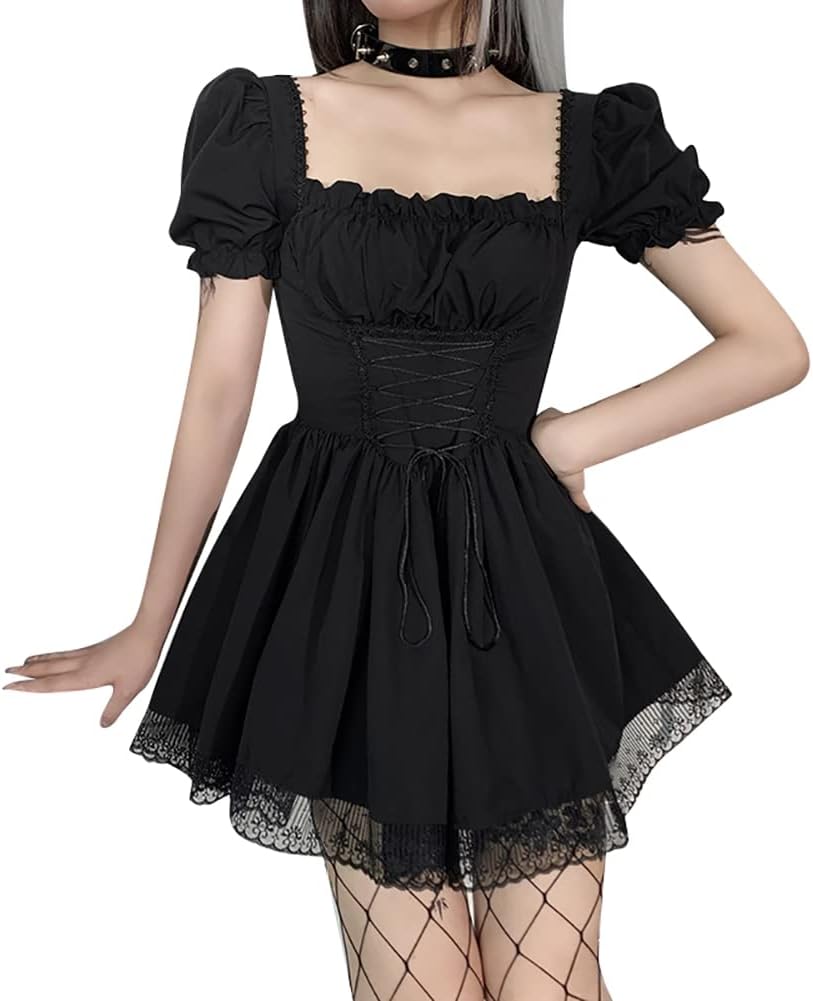 IKADEX Women Gothic Dress Vintage Lace Grunge Punk Goth Dresses Casual Cosplay Party Cocktail